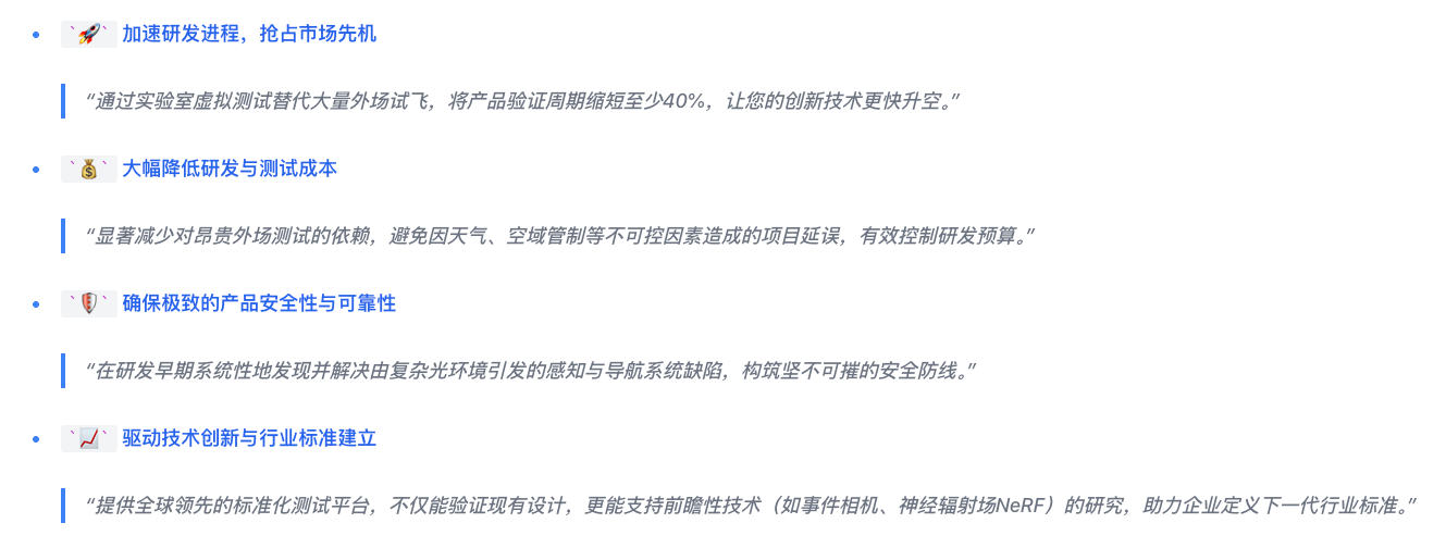 面对低空飞行器行业的诸多挑战,秀白科技推出基于“X-Mation 光学仿真引擎”的整体解决方案。我们并非简单提供测试设备,而是打造了一个集“全天候环境模拟 – 硬件在环测试 – 数据闭环优化”于一体的综合性研发与验证平台。该平台依托我们自主可控的全谱域智能光变调控技术与高动态天空光模拟算法,帮助客户在实验室内构建超高保真的虚拟飞行测试场,以前所未有的效率和精度,驱动低空飞行器的技术创新。